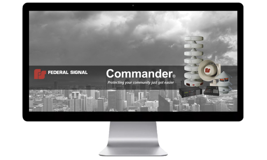 El sistema de control de sirena Commander ofrece tanto la activación segura como el monitoreo del estado de cualquier sistema de alerta y notificación. Desde sirenas gigantes hasta sistemas de sirenas mecánicas e inteligentes, Commander está diseñado para controlar, monitorear y vincular su sistema de advertencia. Federal Signal Commander continúa evolucionando para satisfacer las exigentes demandas de los clientes en todo el mundo para proporcionar un sistema inigualable en sus características y facilidad de uso. Commander ofrece a los administradores de emergencias y operadores del sistema una activación completa y segura junto a un monitoreo del estado de cualquier sirena del sistema..