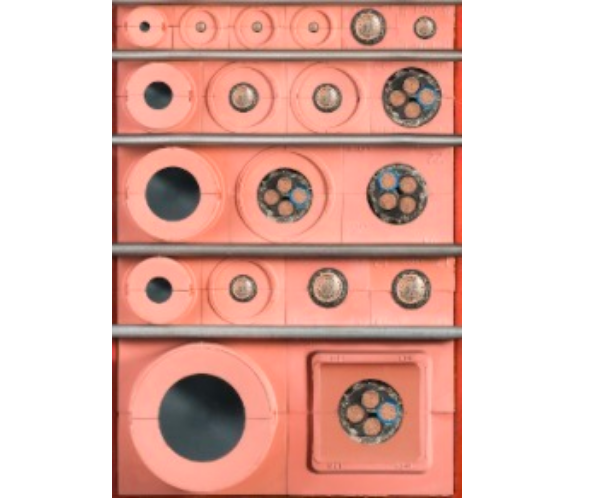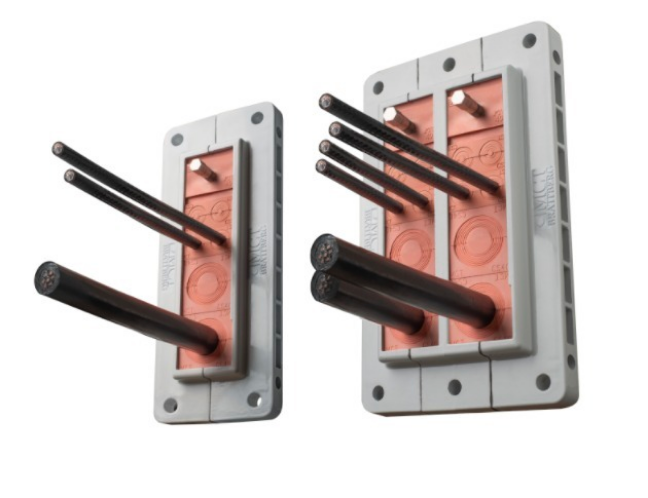 Bloques para sellar todas las gamas de cables y tuberías en los sistemas pasamuros.