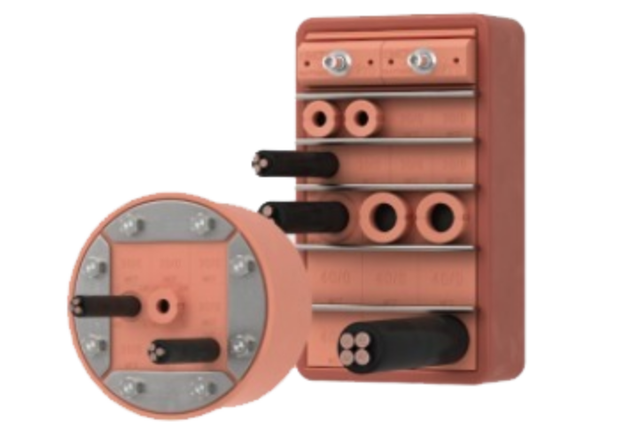 Sellos de alta presión en tránsitos circulares para cables y tuberías.